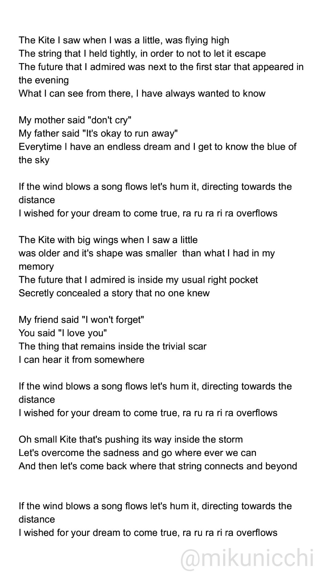 ゆきな On Twitter Arashi Kite Lyrics Translation It S A Really Really Rough Translation First Of All I Only Have The Lyrics From Nhk Video And Secondly I Literally Translated It