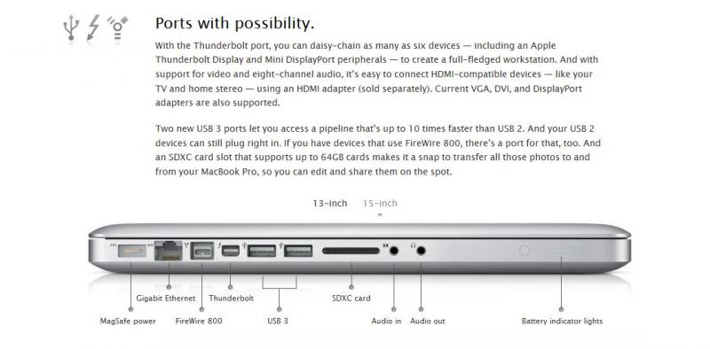 Anschlüsse Mac Book Pro 2012