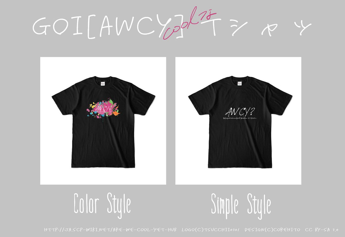 是人 藤津一 On Twitter Scp 要注意団体 Are We Cool Yet tシャツ通販を開始しました Awcy の文字だけをあしらったシンプルタイプと ペンキを散らせたようなカラータイプの2種 是非クールに着こなしてください Colortype Https T Co 8hwakwdz3u