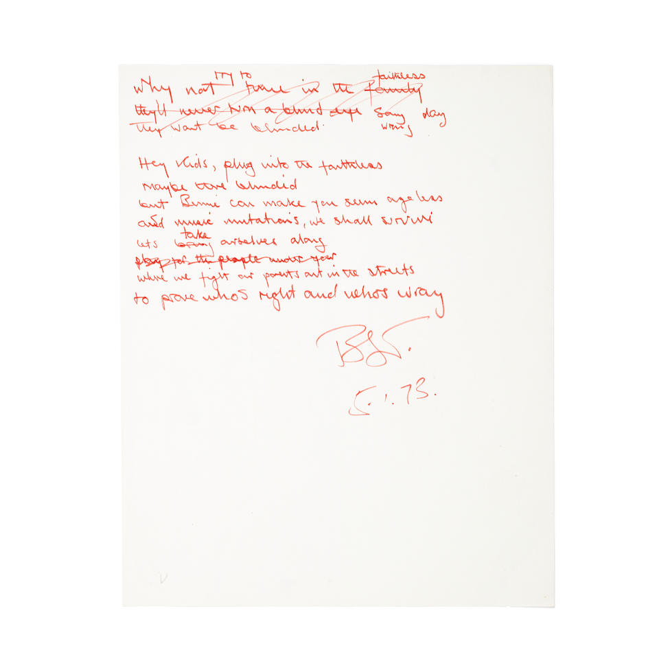 Bonhams Original Handwritten Lyrics Of Elton John S Bennie And The Jets