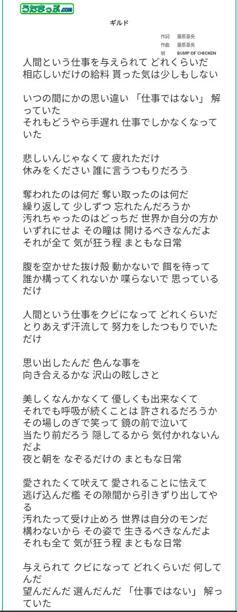 Bump Of Chicken ギルド の歌詞について その1 不二草紙 本日のおススメ