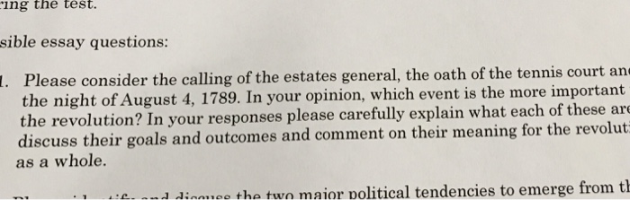 Ing The Test Sible Essay Questions Please Conside Chegg Com