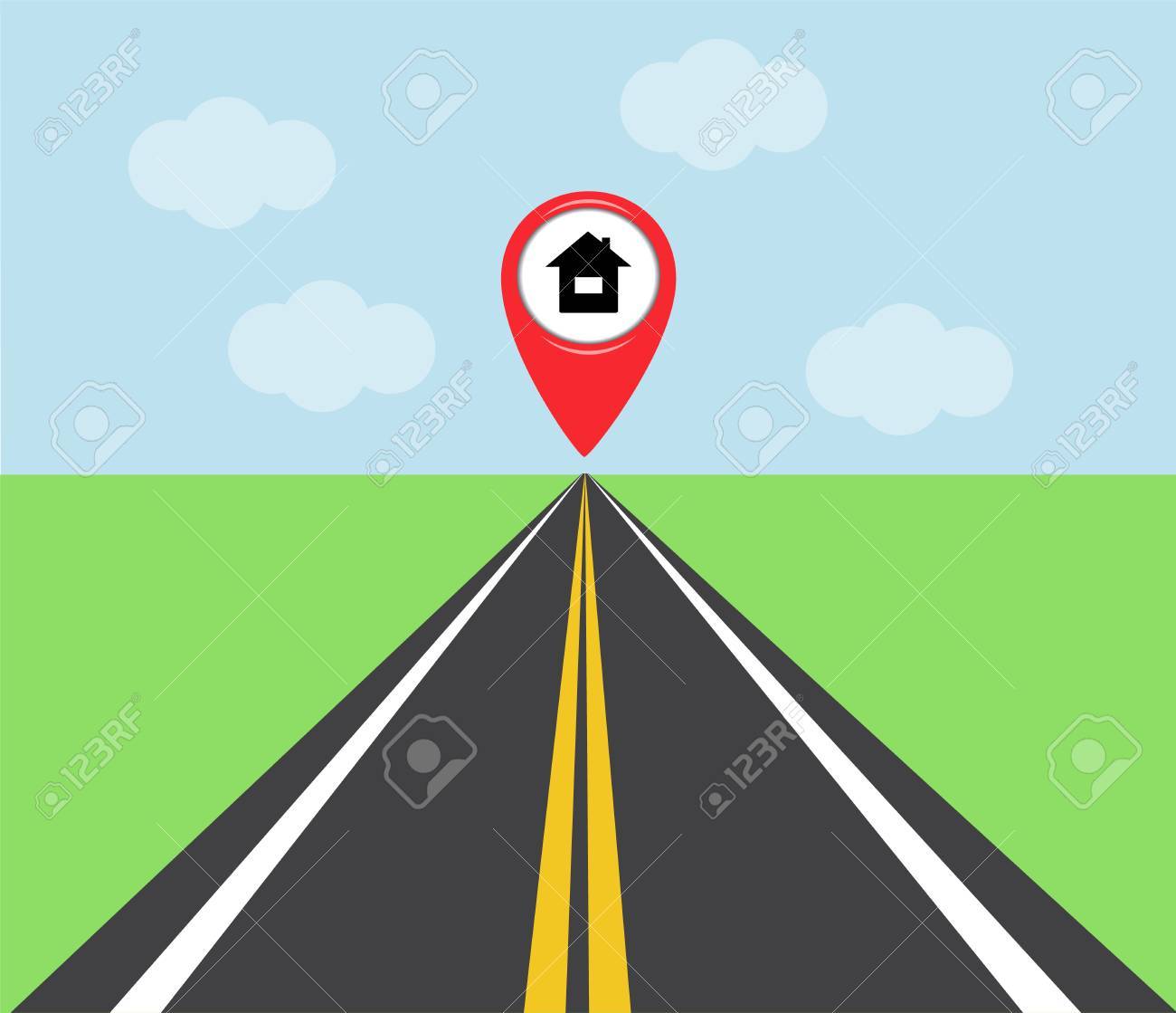 The Road At The End Of Which The Red Sign Indicates The Location Royalty Free Cliparts Vectors And Stock Illustration Image 56648435