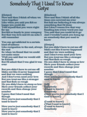 Gotye Somebody That I Used To Know Lyrics Sheet