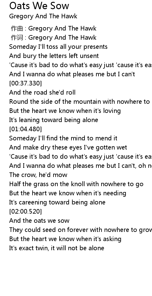 Gregory And The Hawk Oats We Sow Lyrics Musixmatch