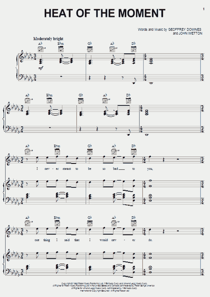 Heat Of The Moment Piano Sheet Music Onlinepianist