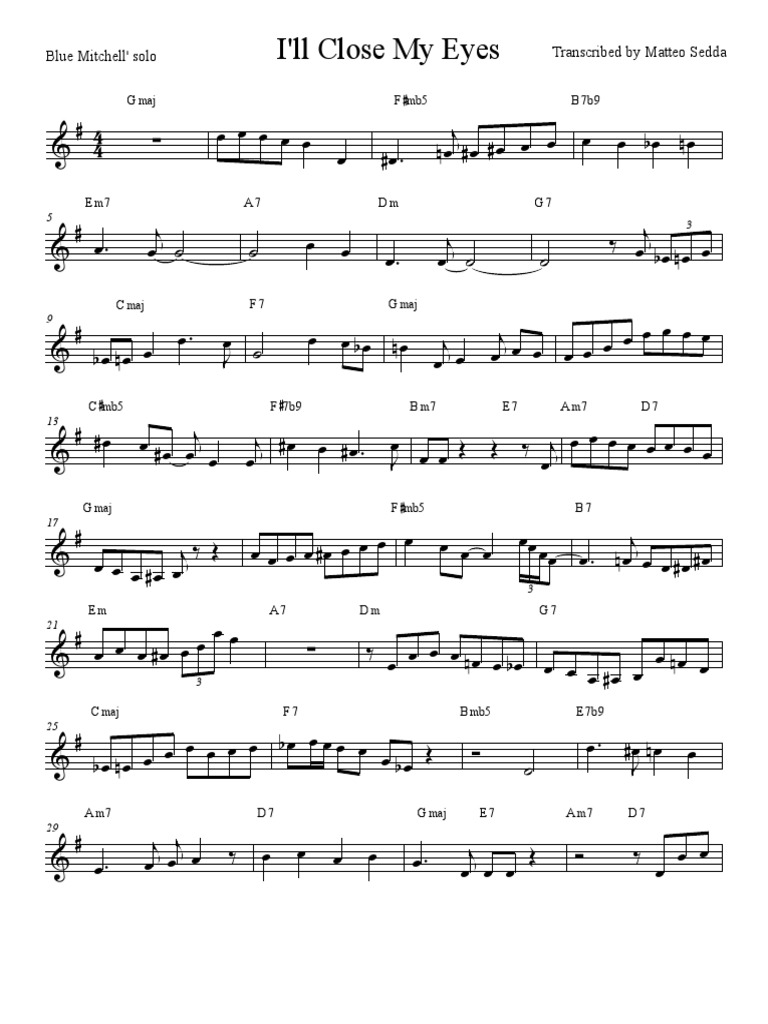 I Ll Close My Eyes Blue Mitchell Transcription