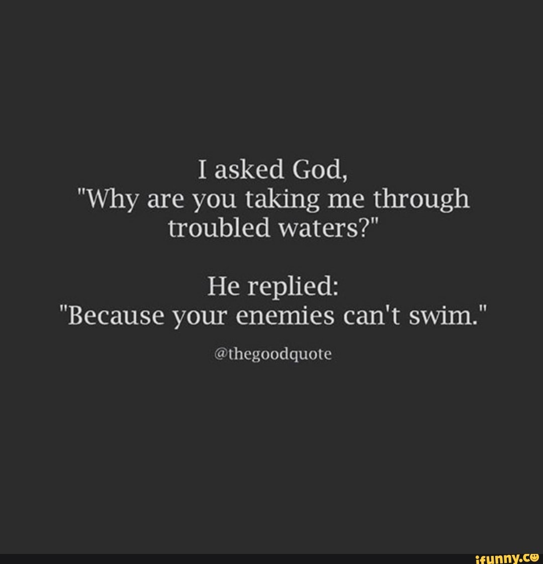 I Asked God Why Are You Taking Me Through Troubled Waters He Replied Because Your Enemies Can T Swim Lhegoodquote Ifunny