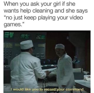 When You Ask Your Girl If She Wants Help Cleaning And She Says No Just Keep Playing Your Video Games I Would Like You To Record Your Command Ifunny