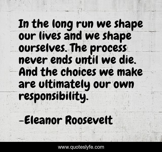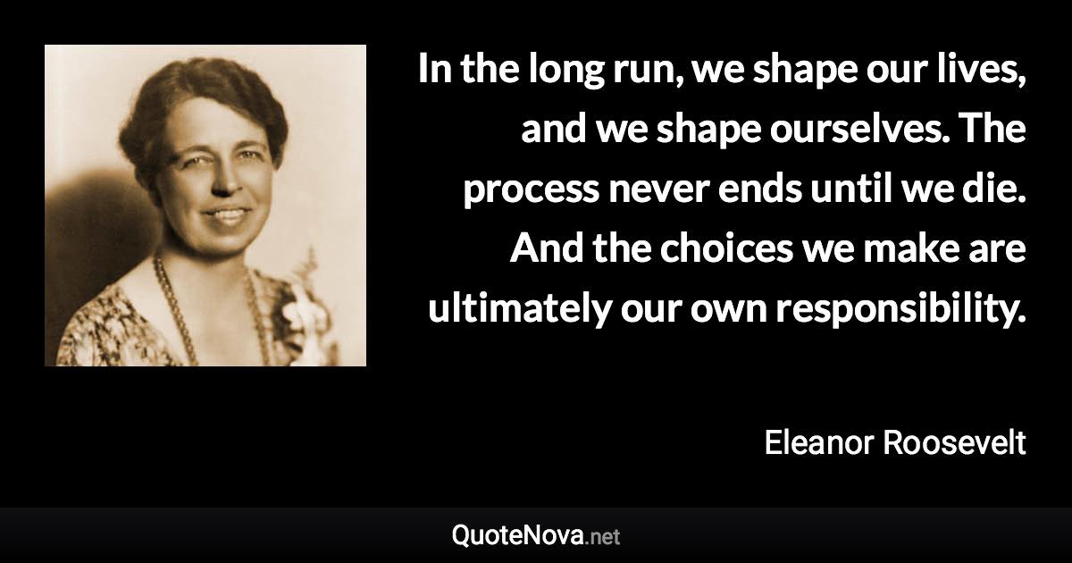 In The Long Run We Shape Our Lives And We Shape Ourselves The Process Never Ends Until We Die And The Choices We Make Are Ultimately Our Own Responsibility Eleanor Roosevelt