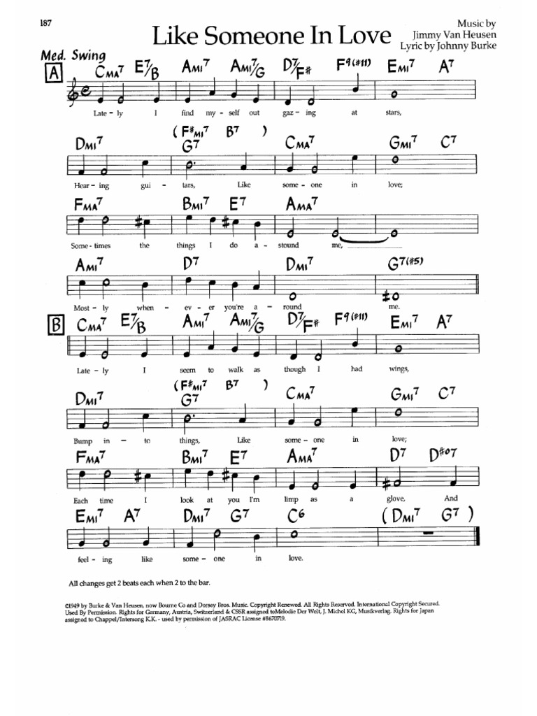 Like Someone In Love Backing Track Jazz Swing Feel Tempo 130 Jimmy Van Heusen Sheet Music Like Someone In Love Backing Tracks Liking Someone