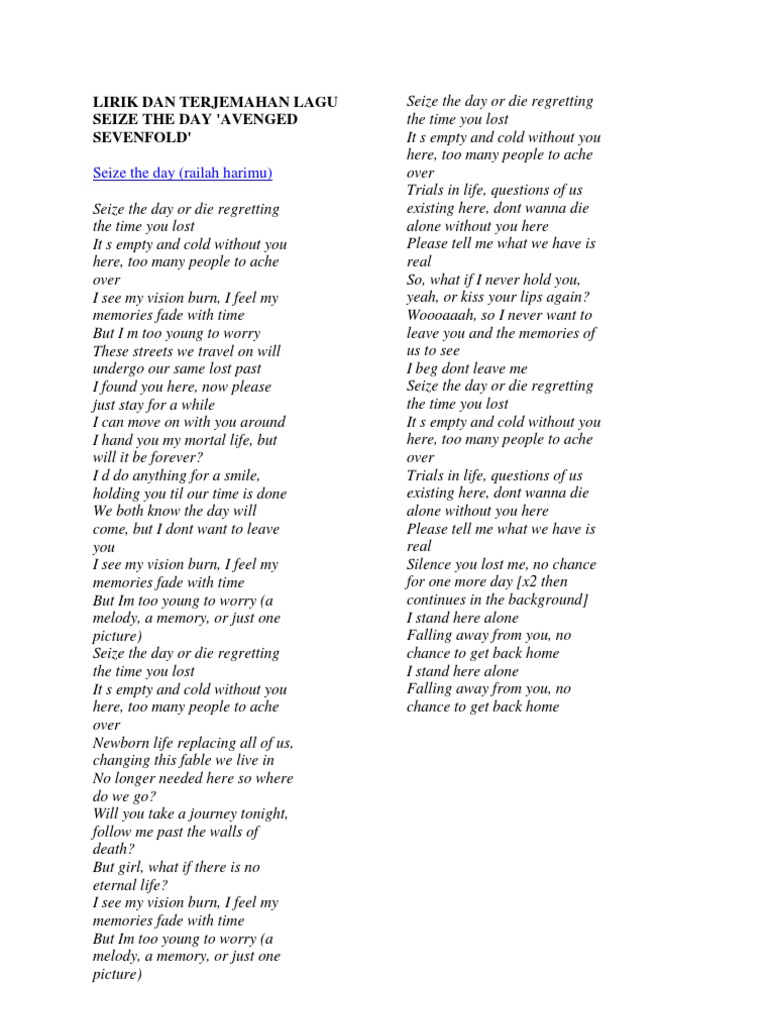 Lirik Dan Terjemahan Lagu Seize The Day Music