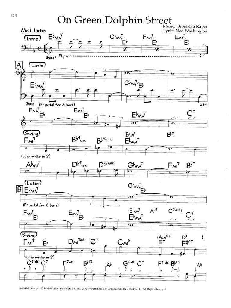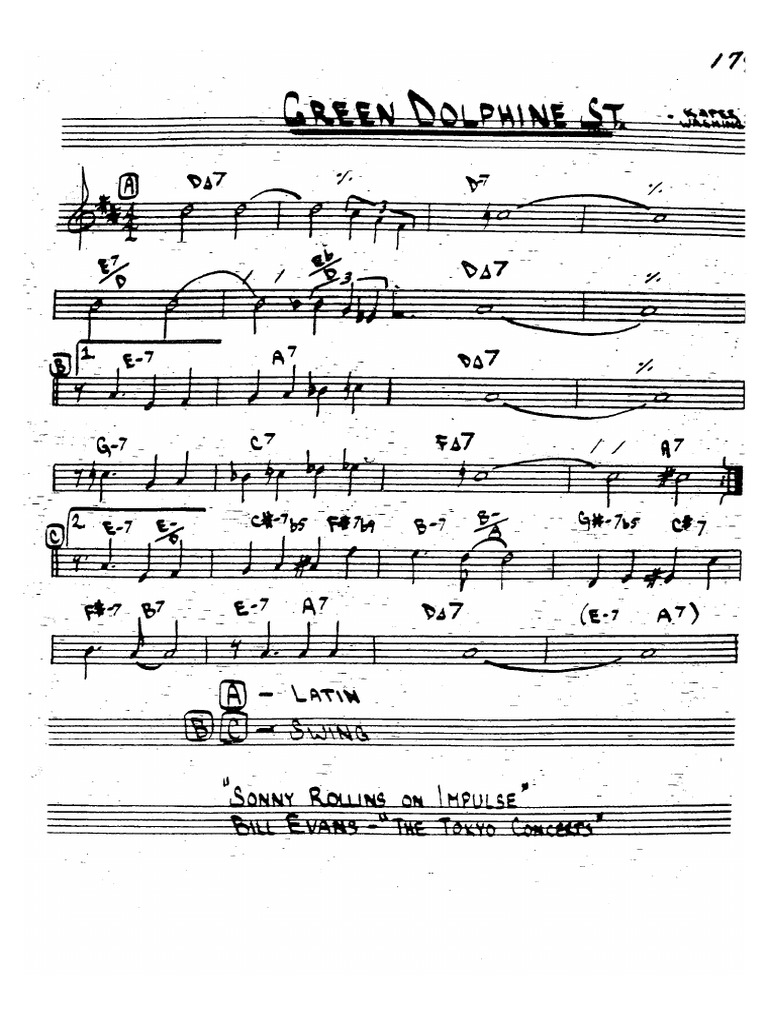 On Green Dolphin Street Sheet Music Notes Bill Evans Chords Download Jazz Notes Piano Pdf Printable 73349