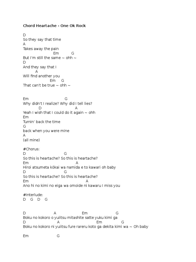 Talkingchord Com One Ok Rock Heartache Chords