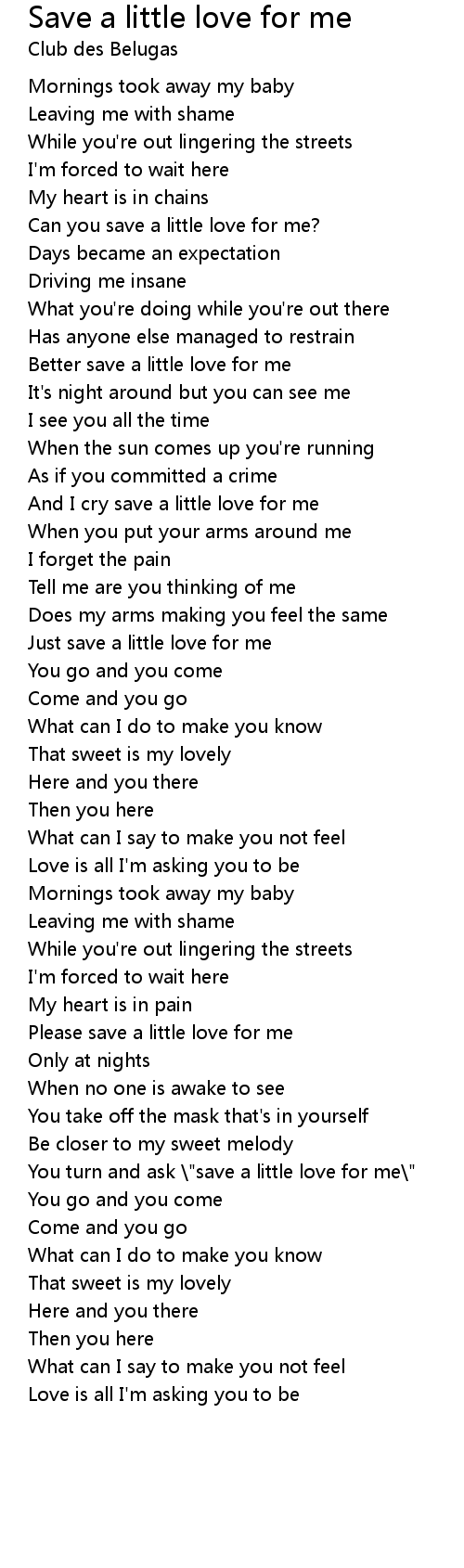 Save A Little Love For Me Lyrics Follow Lyrics