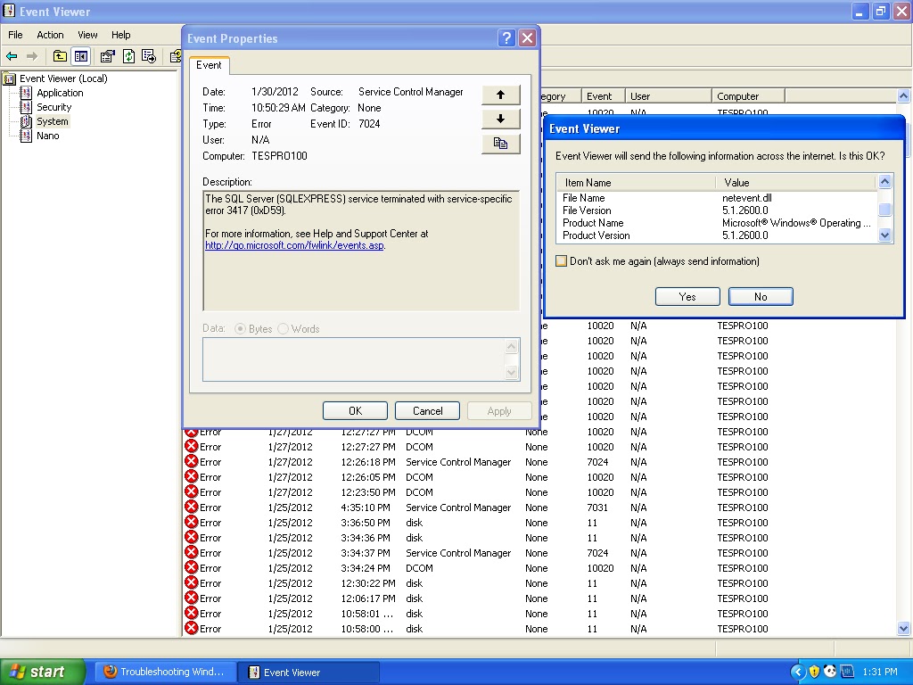 Troubleshooting Windows Errors And Solutions Service Specific Error 3417 Sqlexpress