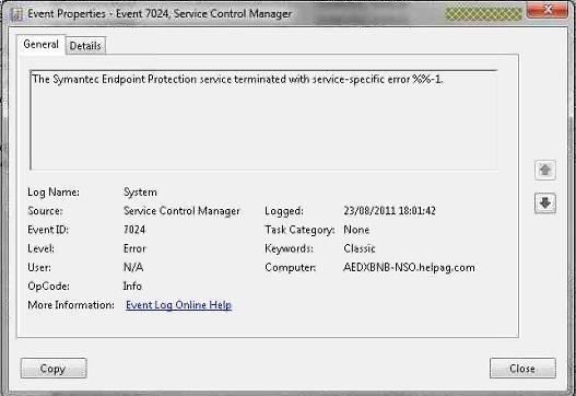 The Symantec Endpoint Protection Service Terminated With Service Specific Error 1