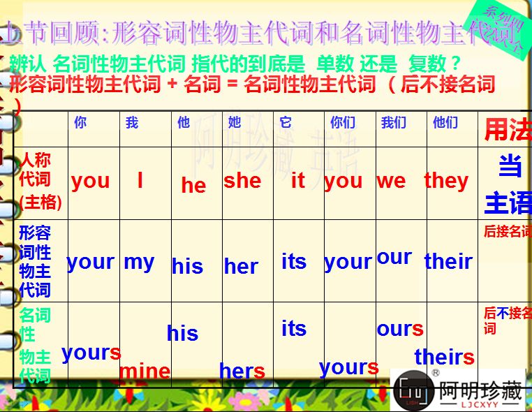 英语关于人称的主格 宾格 形容词性物主代词 名词性物主代词 是什么 相关视频 英语人称代词主格和宾格的用法 爱言情