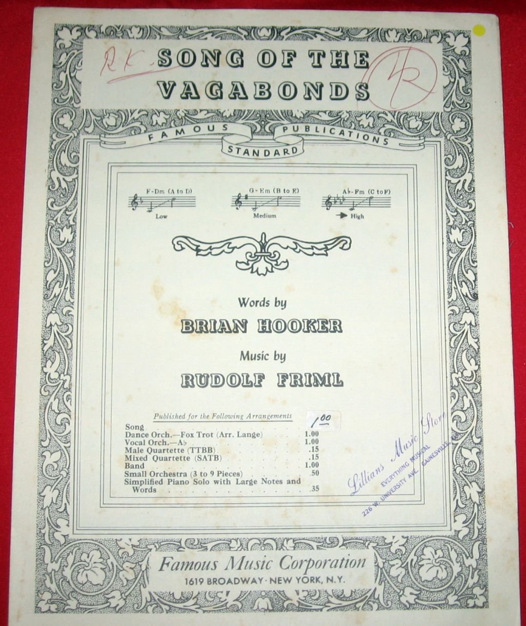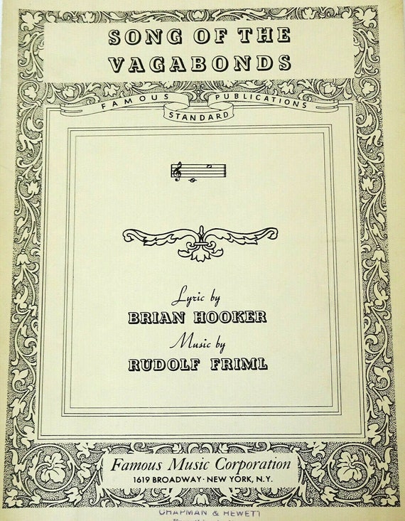 Song Of The Vagabonds Vintage Sheet Music 1925 Hooker Rudolf Etsy