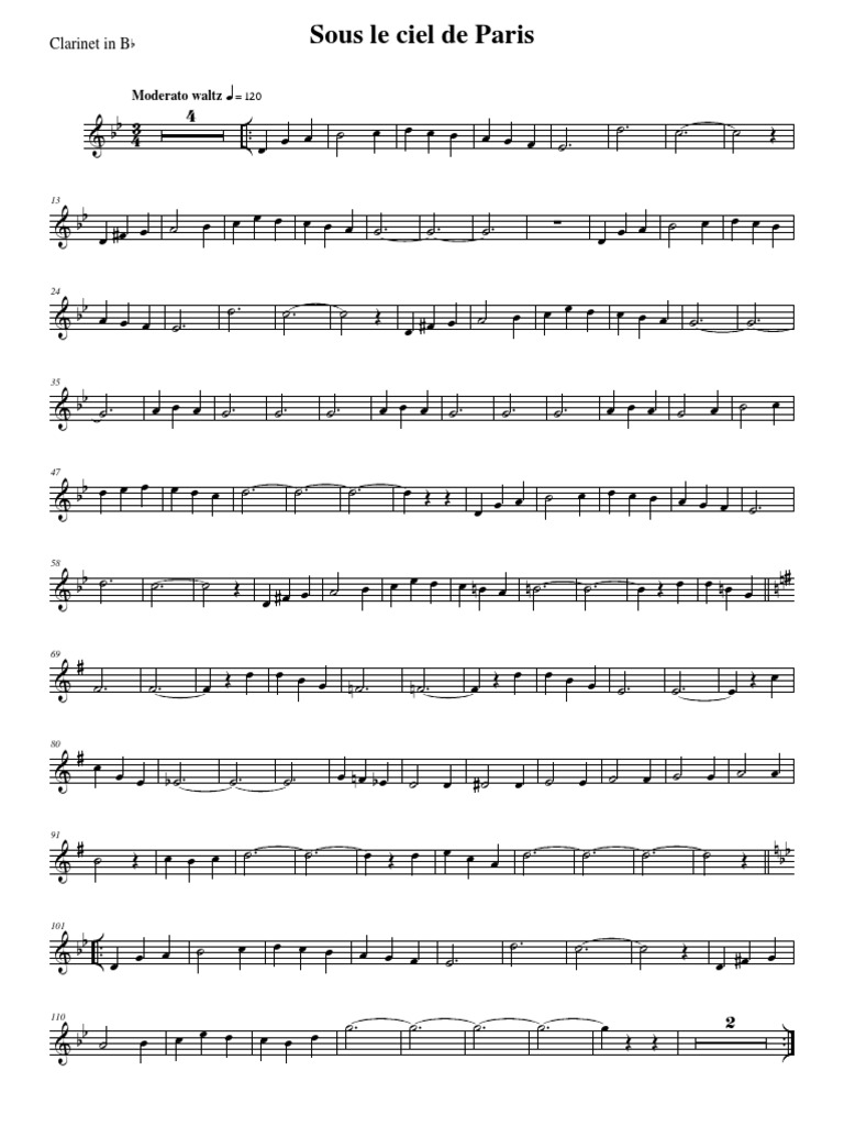 Finale 2009 Sous Le Ciel De Paris Clarinet In Bb