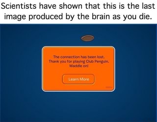 Scientists Have Shown That This Is The Last Image Produced By The Brain As You Die The Connection Has Been Lost Thank You For Playing Club Penguin Waddle Cul Ifunny