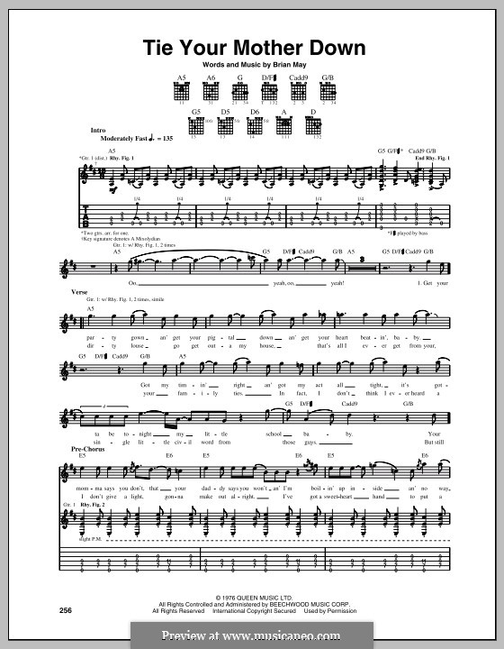 Tie your mother down guitar chords and lyrics as performed by queen. Tie your mother down tab by queen. Tie your mother down. Learn to play guitar by chord tabs using chord diagrams transpose the key watch video lessons and much more.