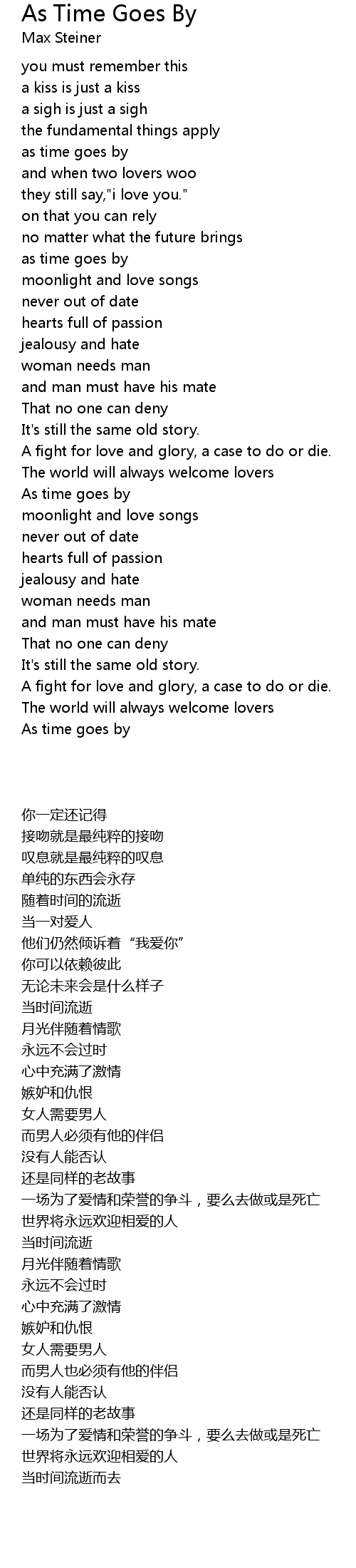Love Song Lyrics For As Time Goes By Herman Hupfield With Chords