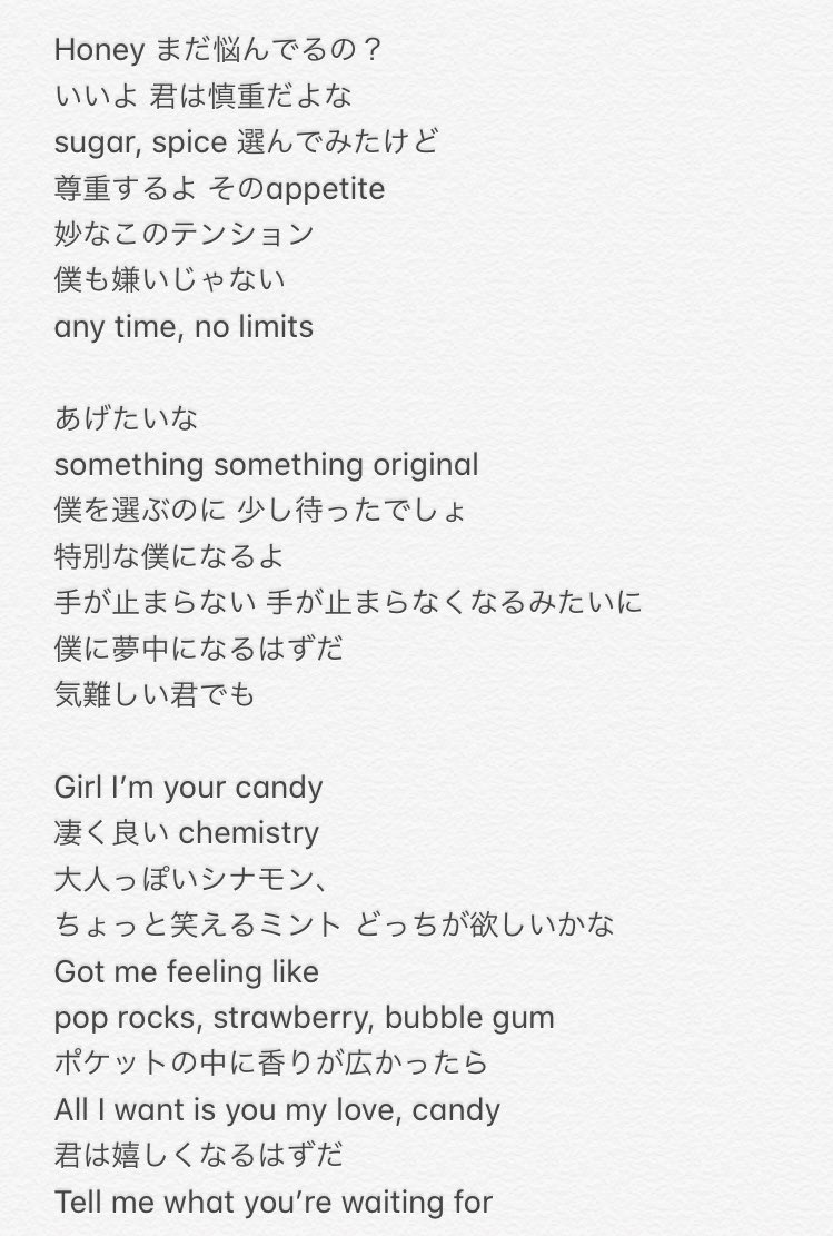 Xiiukoo على تويتر ベク Candy 歌詞 和訳