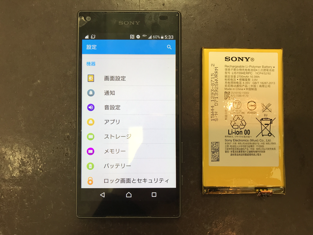 電池の減りが早いとxperiaz5 501so のバッテリー交換修理を承りました Xperia Galaxy Zenfone Huawei Nexus修理のアンドロイドホスピタル